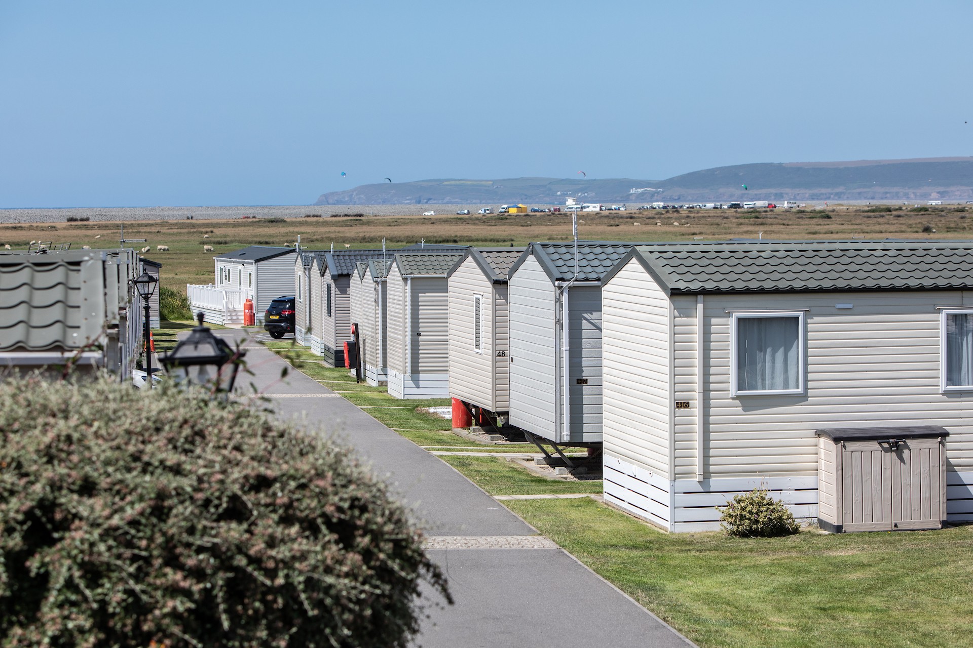 Static caravans right next to the shore with your own private access to the beach.