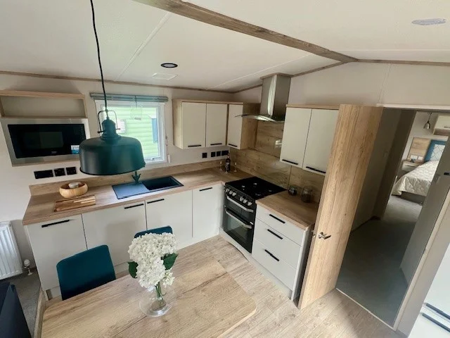 Measuring 39ft x 12ft, this spacious and stylish 2-bedroom model combines luxury, comfort, and unbeatable views — and is about to be upgraded with brand new front decking, ideal for outdoor living and soaking in the tranquil surroundings.