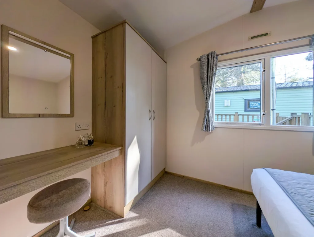 Step outside onto the decking area to the side, perfectly positioned to enjoy dappled sunlight through the trees. With private parking directly beside the caravan, convenience and comfort come hand in hand.