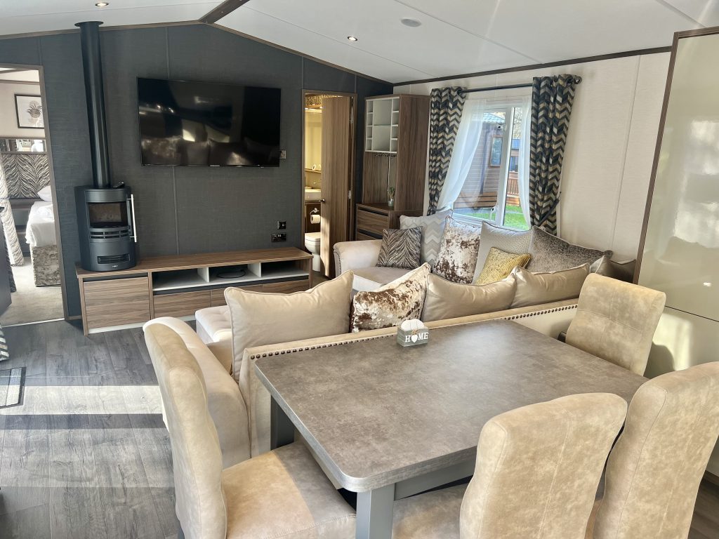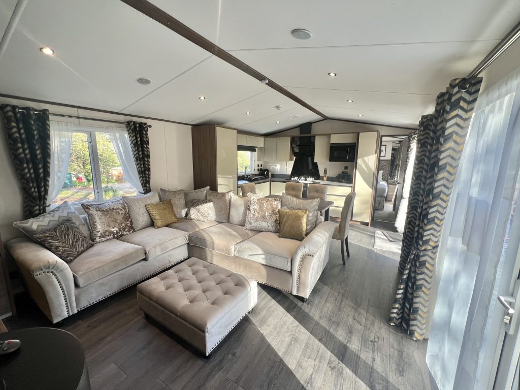 It boasts an open-plan layout with high-quality finishes, providing a modern and inviting living space for relaxation.