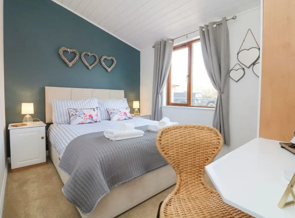 Step outside onto the expansive decking, perfect for soaking in the scenery or enjoying alfresco dining. Located in a peaceful park, the lodge is just minutes from North Devon’s beaches and coastal trails, making it an ideal holiday retreat.