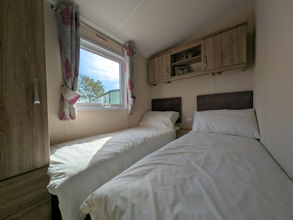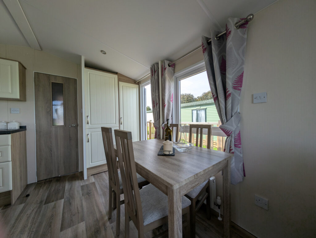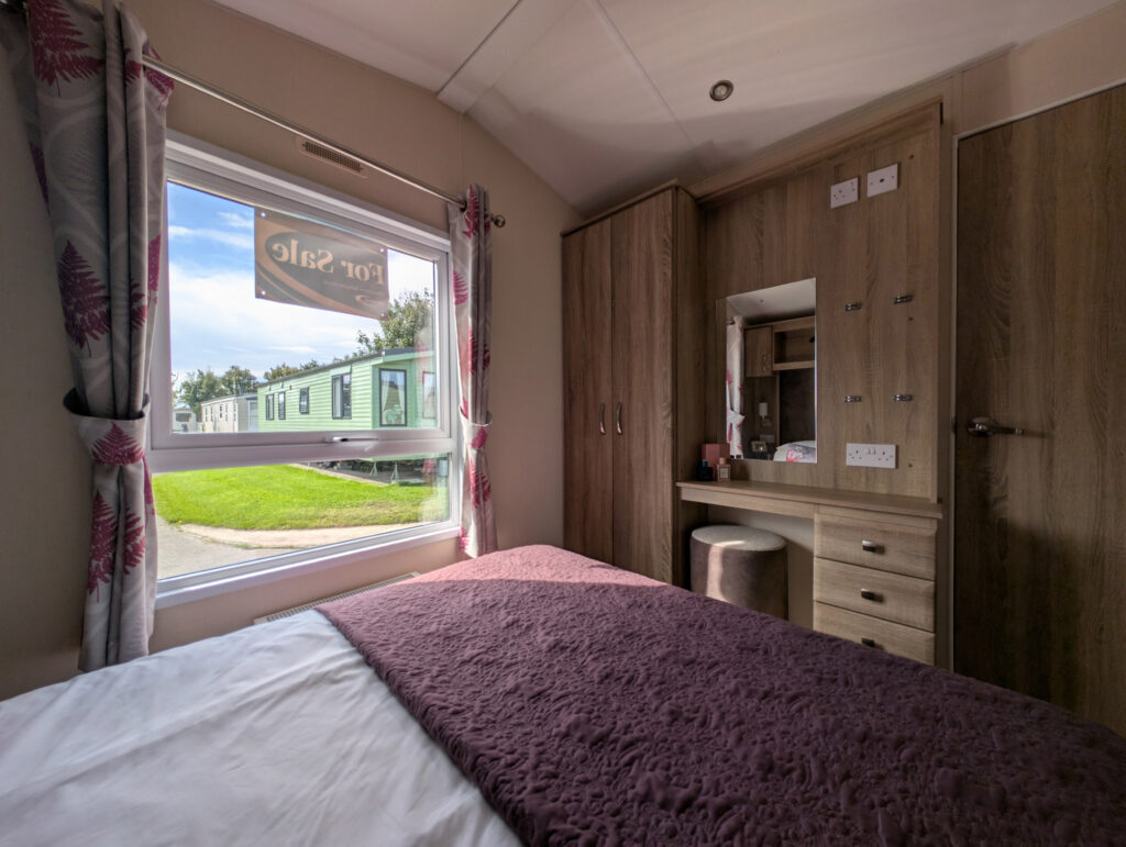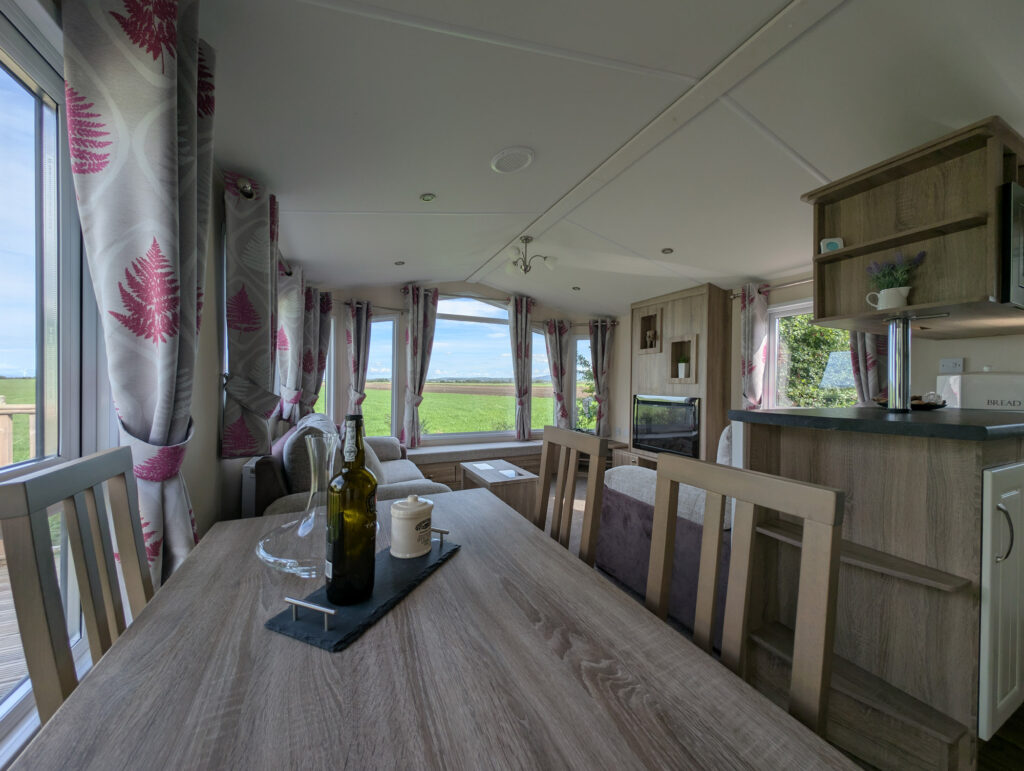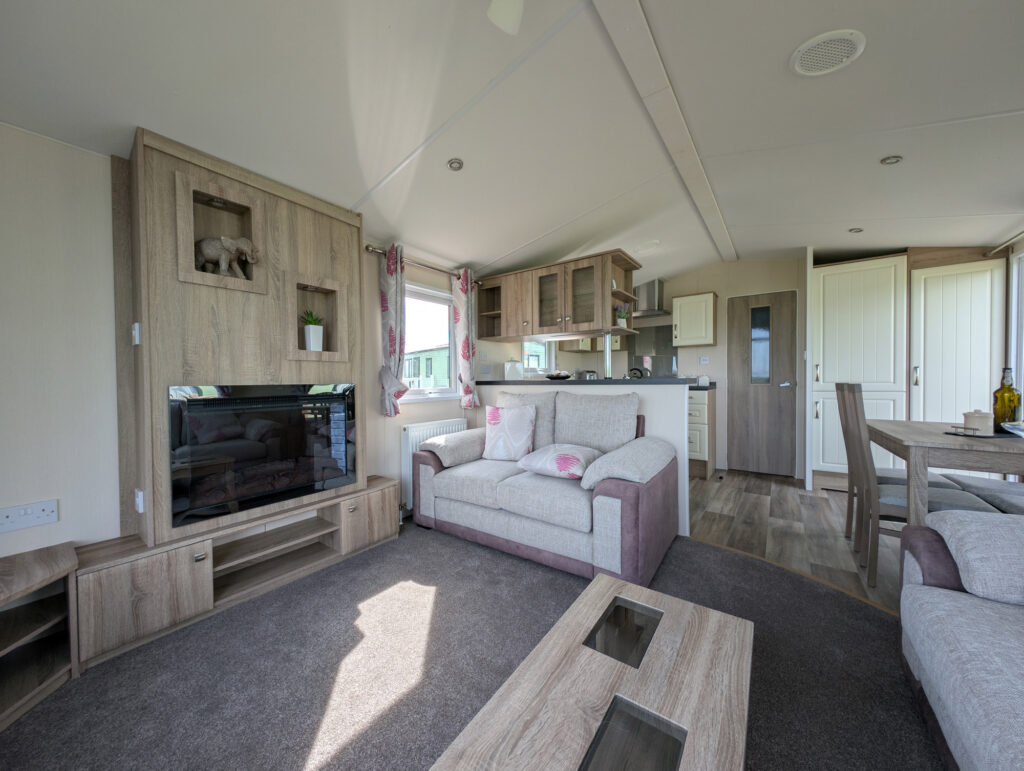 You will feel at home in the Mulberry! The lounge offers glorious panoramic views through the large picture windows. Modern furniture and attractive soft furnishings, the electric fire makes an impressive central feature. Preparing a meal is a real pleasure in the beautiful kitchen with its raised work surfaces, contrasting cupboard doors and integrated fridge-freezer, oven, grill and microwave.