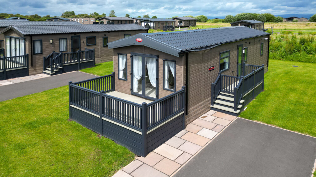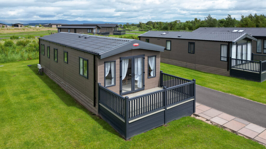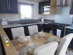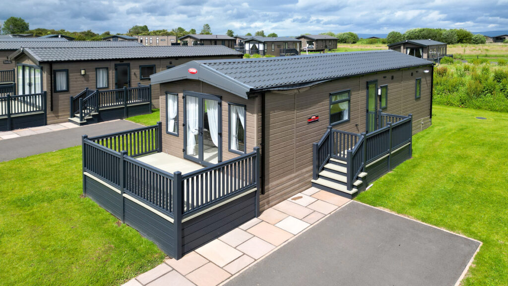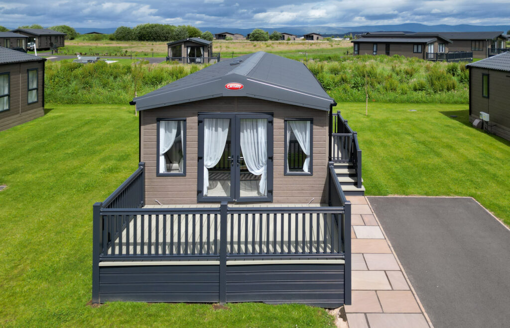 This spacious lodge takes luxury to the next level. Enjoy stunning views over the North Lakes from the large patio doors and relax on the grand sofa . Perfect for cosy nights in, the entertainment unit comes complete with a stunning glass-fronted fire and has space for a 55” TV. The contemporary kitchen is a real show-stopper with its gold effect handles. There is a fabulous three pendant light above the dining table. The spacious master bedroom boasts a full-sized en suite shower room, the family bathroom also features a large sink to provide home from home comfort.