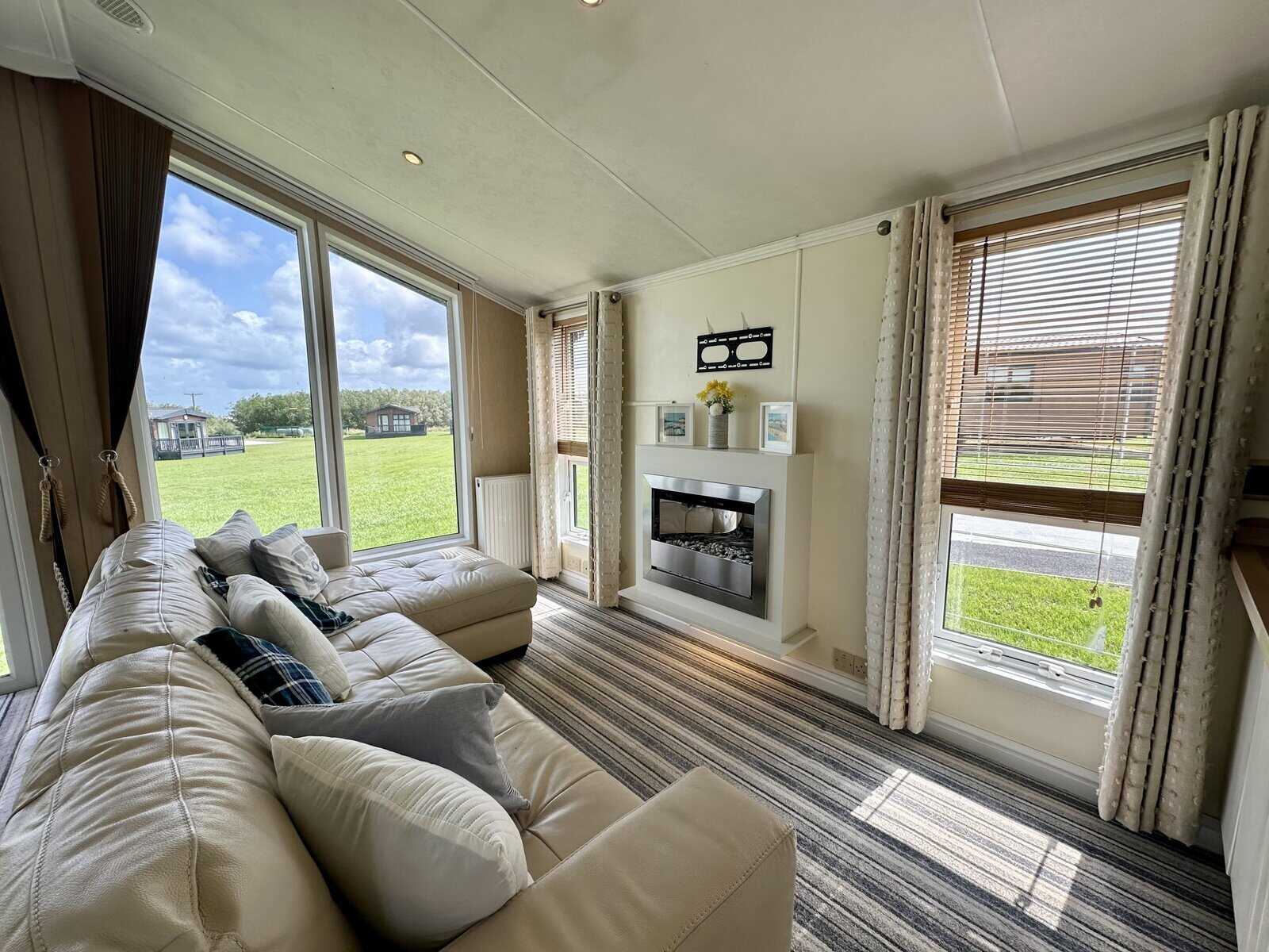 Step into hotel-style luxury with an open-plan lounge featuring a corner sofa, Bluetooth speakers, cocktail bar, and stylish storage. The kitchen is both practical and elegant, with a 5-burner gas hob, integrated appliances, and clever LED lighting. Both bathrooms are spa-inspired with twin sinks and premium showers.