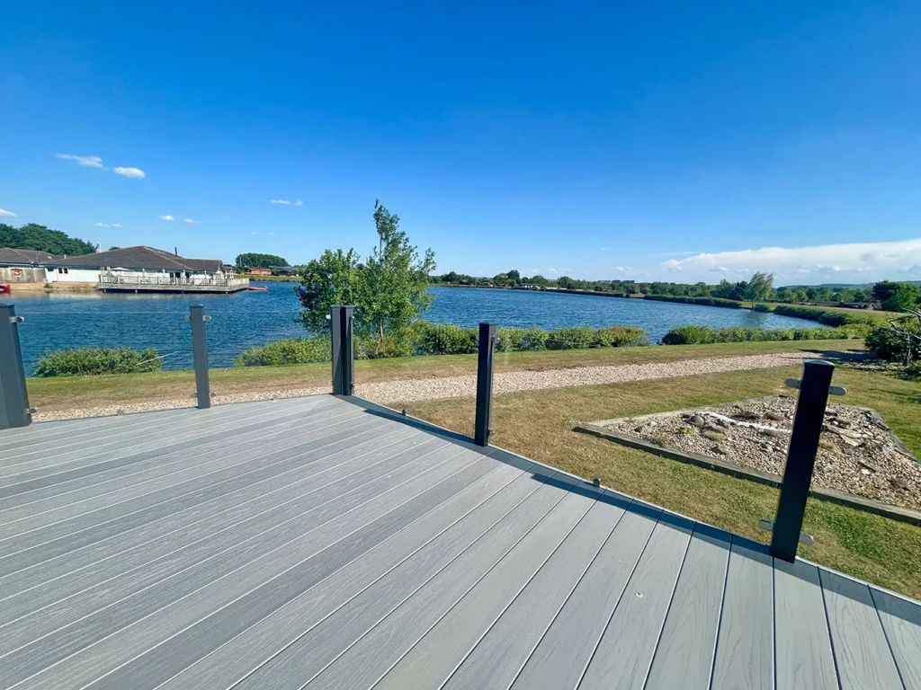 With its distinctive CanExel-clad exterior, this stunning lodge makes an unforgettable first impression. Perfectly positioned on a prime lakeside plot, it features full wraparound decking — an ideal spot to relax, unwind, and take in the tranquil scenery. Slimline vertical windows, striking angled glazing, and elegant French doors flood the interior with natural light and frame breathtaking views, creating a seamless connection between indoors and out.