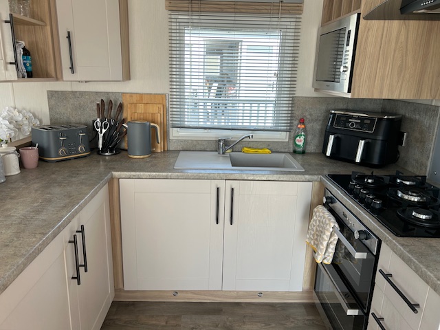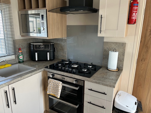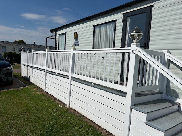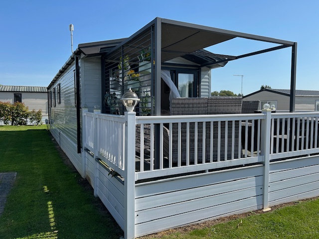 Great site: security gate, night patrol, regular maintenance, large clubhouse with entertainment and food, grocery/gift shop, fish and chip shop—all right on the beach and a short walk to the village. Stay 11 months a year; site fees for 2026 are £5,195. Gas and electric tested for 2025 (certificate available).