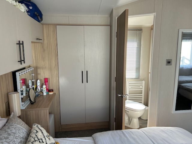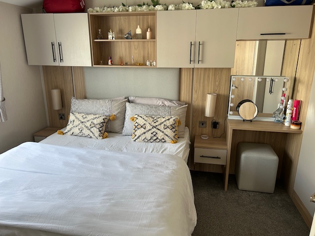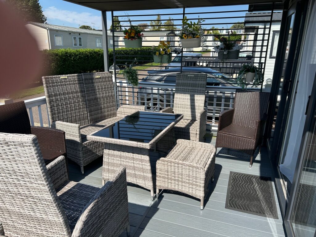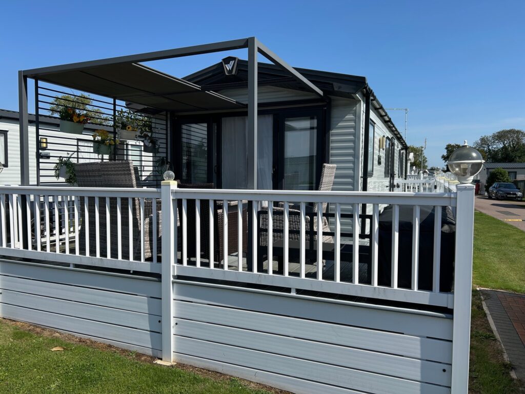 2020 Willerby Lamberhurst static caravan for sale—corner plot at Seaview Holiday Park, West Mersea. Bought June 2022; excellent condition throughout. Spacious 38x12 ft, 2 bedrooms, sleeps 6. Extended decking and secure, metal-insulated storage box included.