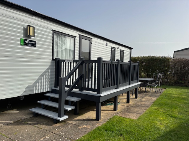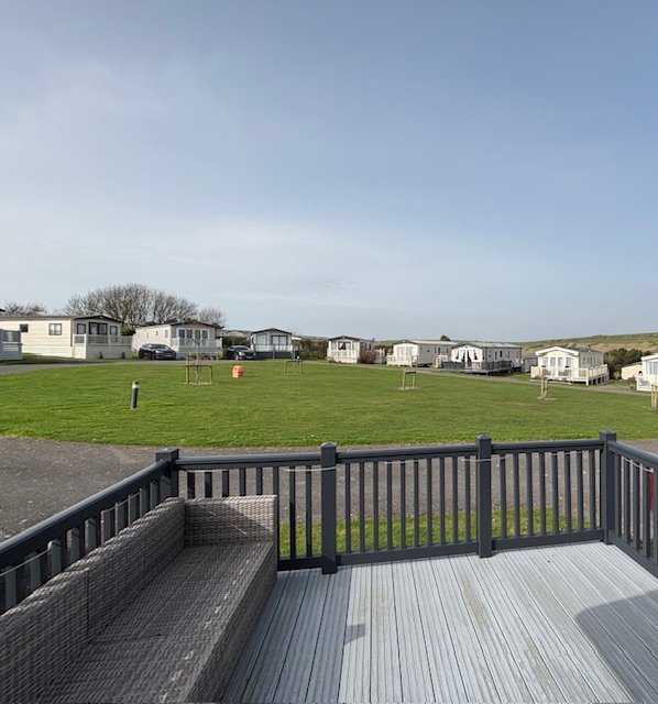 The caravan is perfectly positioned with a large green to the front, giving a real sense of space and privacy. You can enjoy the surroundings from the spacious 10ft front decking, as well as additional side decking at the main entrance. The plot also includes a large private garden, patio area with table and six chairs for outdoor dining, a grassed area, rear shed storage, and ample parking.