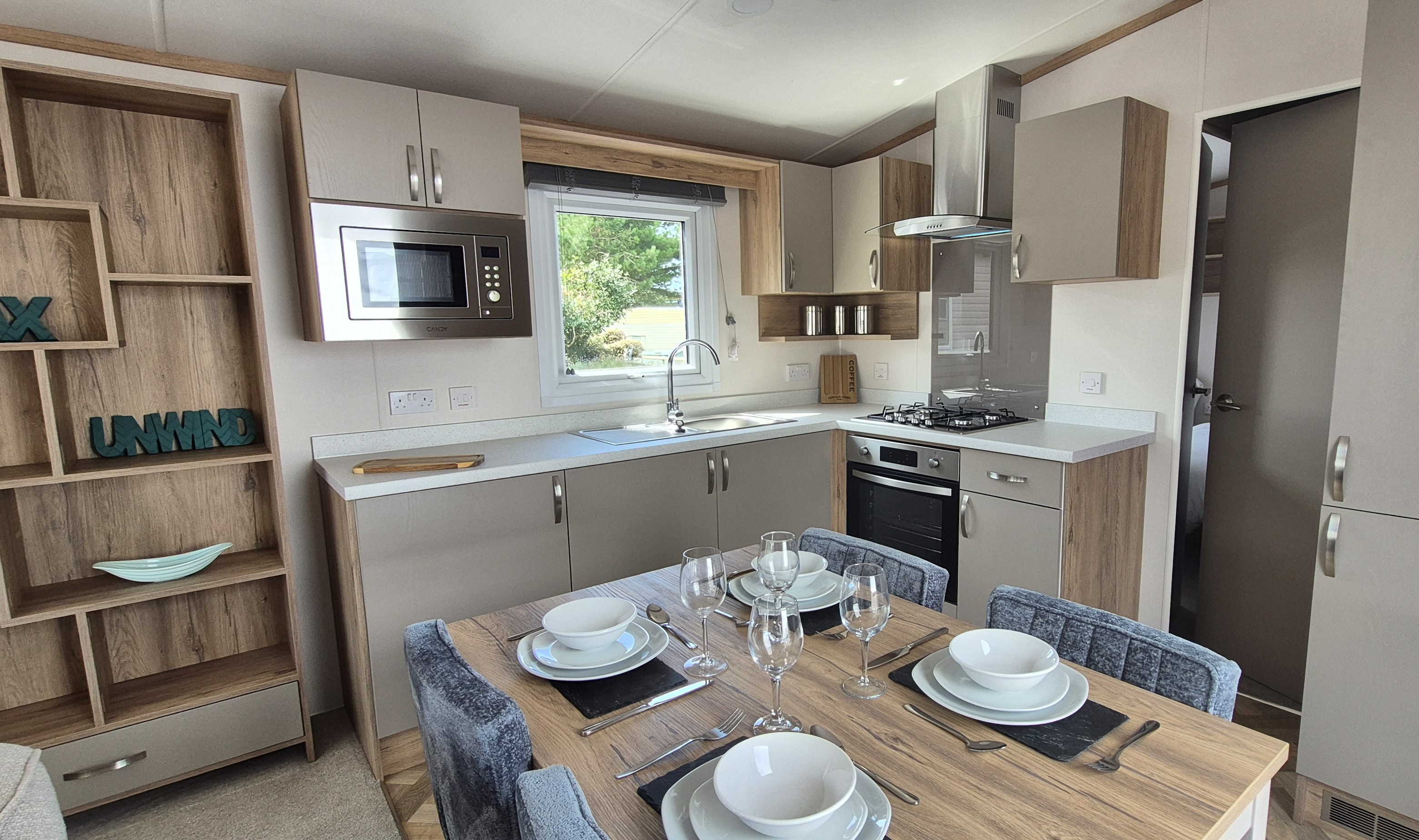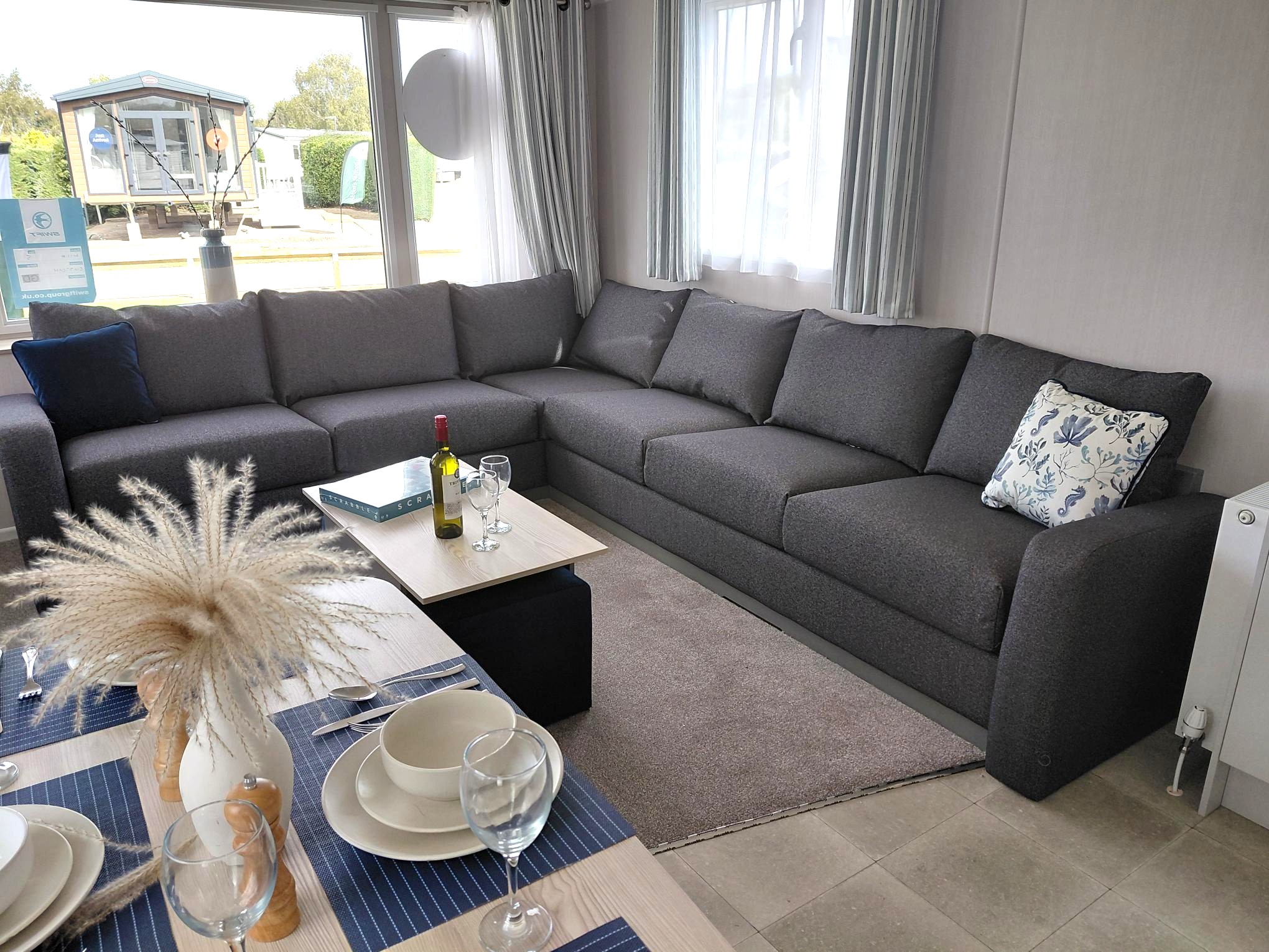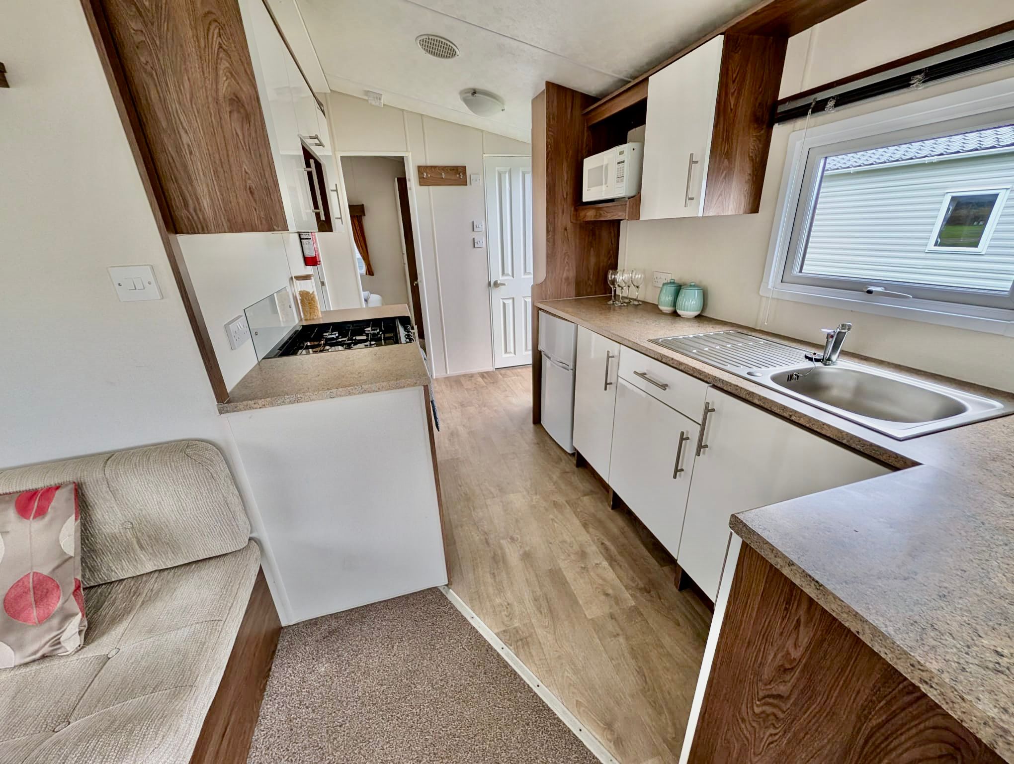 The caravan sits in a quiet cul-de-sac with only a few other vans nearby, so it’s peaceful and not overlooked.
