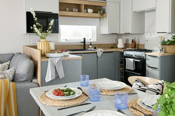 Generously proportioned at 28x12 with two comfortable bedrooms, the Ardennes has been thoughtfully designed from the ground up with family life at its heart. Step inside and you're immediately welcomed by a practical entrance hallway — a rare and genuinely useful feature that makes light work of sandy feet, muddy boots, and over-excited pets after a day exploring the Aldeburgh coastline. It's the kind of detail that makes a real difference to everyday holiday living.