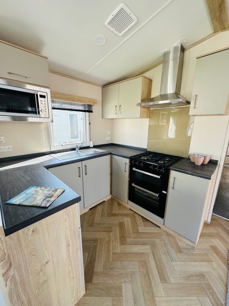 Crafted for 2025, this brand-new lodge showcases premium craftsmanship and a true holiday feel, finished in refreshing neutral tones with uplifting patterns. The contemporary kitchen stands out with brushed black worktops and modern appliances, while large windows fill the home with natural light for an airy, welcoming interior.