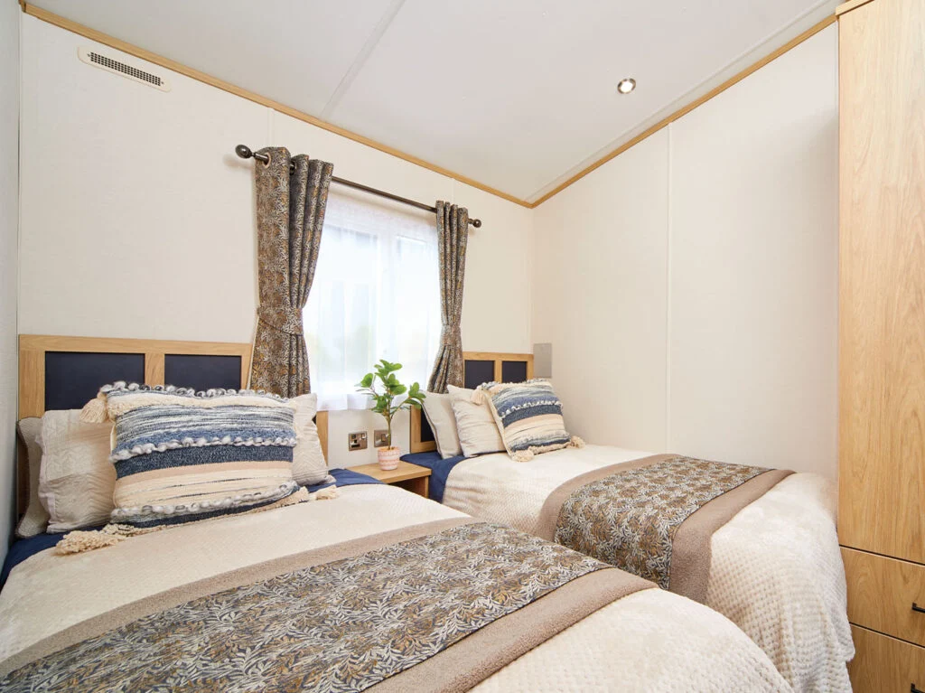 Step into the stunning lounge, where patio doors flood the space with natural light and a grand corner sofa with pull-out daybed offers the perfect place to unwind. With space for a 65” TV and a flame-effect electric fire, it’s the ideal setting for entertaining guests or enjoying a cosy movie night.