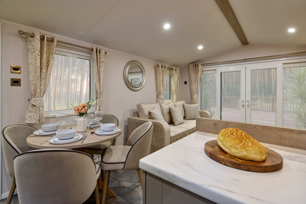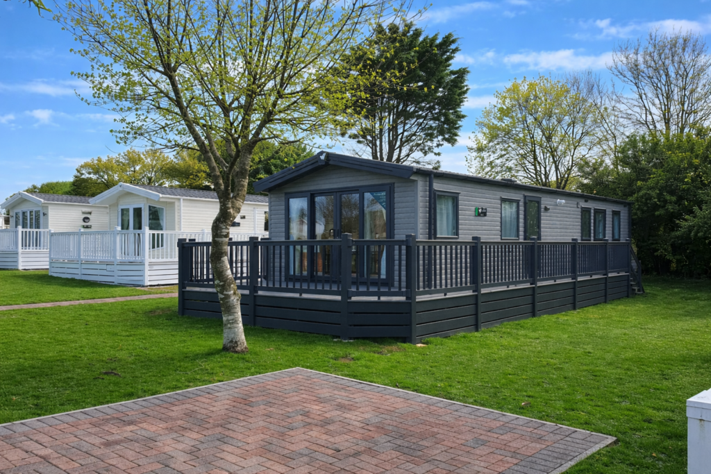 Its modern exterior features light grey aluminium cladding, white PVCu double-glazed windows and doors, and elegant under-canopy lighting. Built to the GreEN Standard EN1647, the Salisbury sits on a painted chassis and offers both durability and contemporary appeal.
