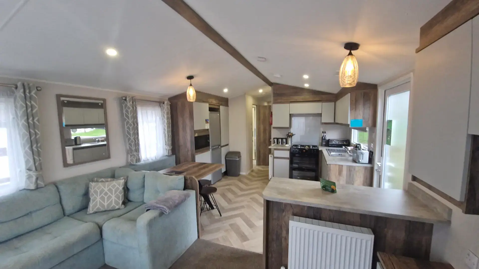 The stylish Sierra doesn’t skimp on sophistication. Featuring bold green cabinet doors, splashes of contemporary pink fabrics, rustic oak features, this model is bang on trend.